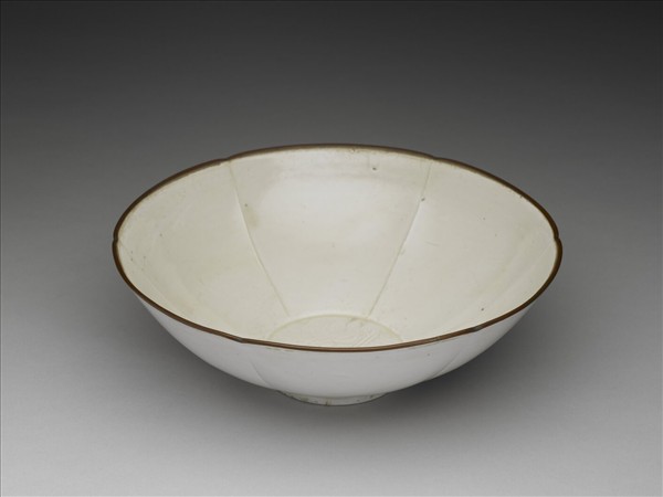 定窯 白瓷劃花雙魚紋葵花式碗