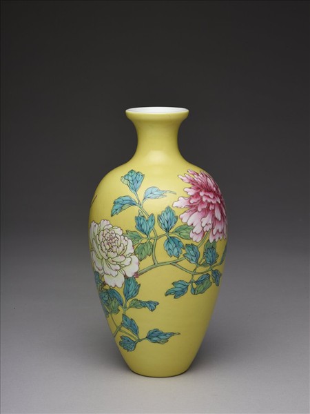琺瑯彩黃地牡丹花紋瓶