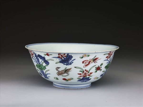 五彩蓮塘鴛鴦紋碗