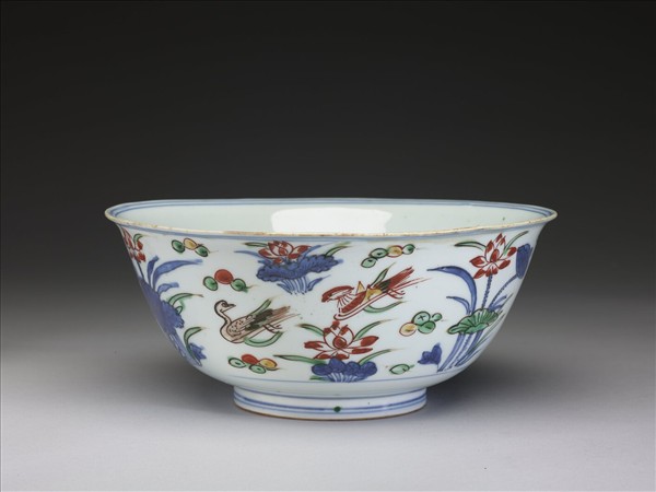五彩蓮塘鴛鴦紋碗