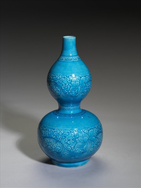 孔雀綠釉番蓮紋葫蘆瓶