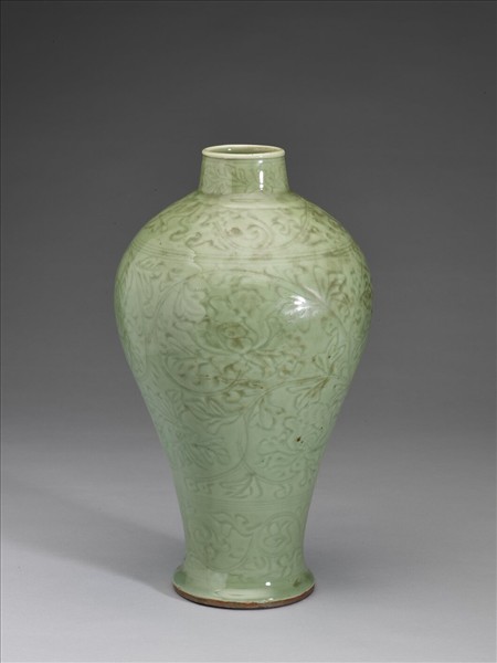 龍泉窯 青瓷牡丹紋梅瓶