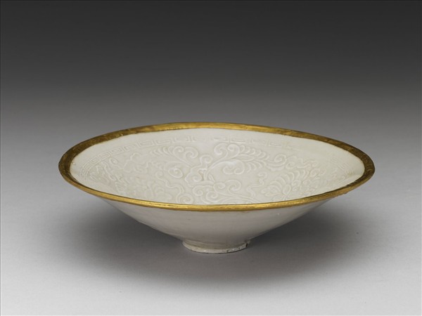 定窯 白瓷印花纏枝牡丹紋斗笠碗