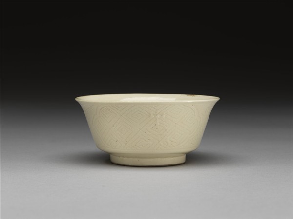 彭窯 白瓷壽字花卉紋杯