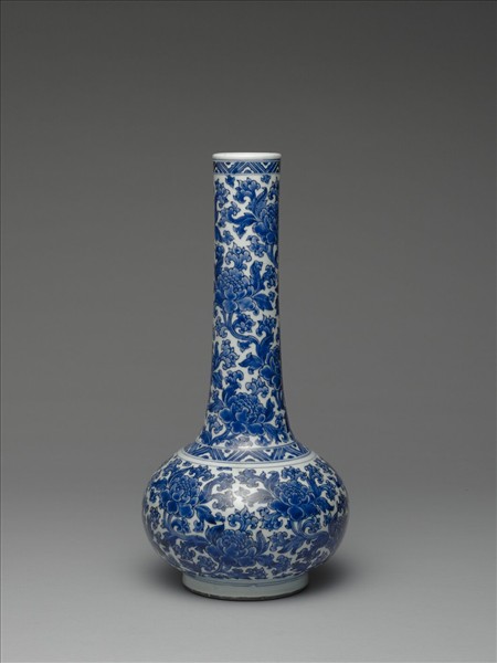 青花牡丹紋長頸瓶