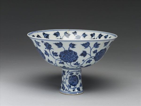 青花轉枝芙蓉紋高足碗