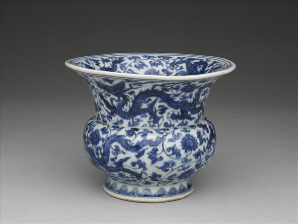 青花穿花龍紋渣斗