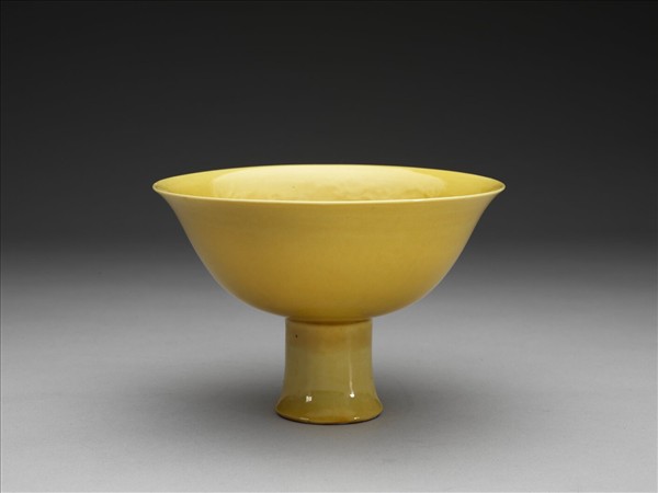 黃釉暗龍紋高足碗