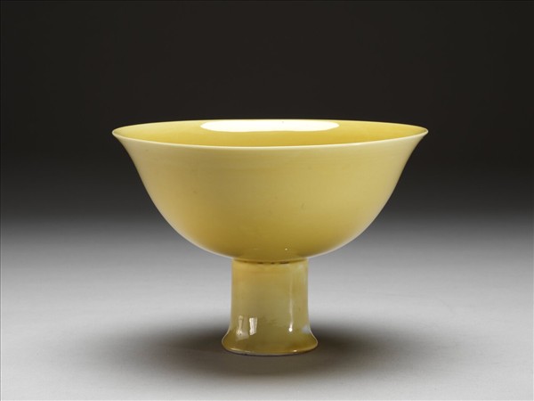 黃釉暗龍紋高足碗