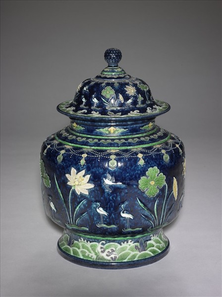 琺華三彩蓮塘紋蓋罐