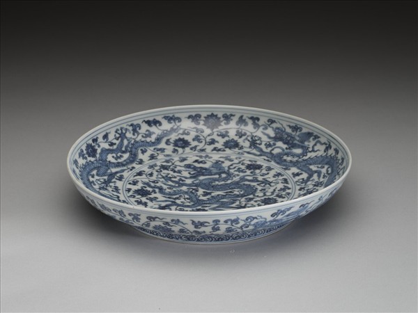青花番蓮龍紋盤