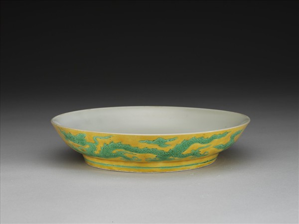 黃地綠彩龍紋盤