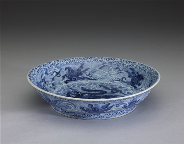青花釉裡紅波濤龍紋盤