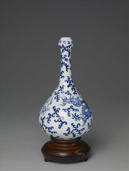 青花雲龍紋蒜頭瓶