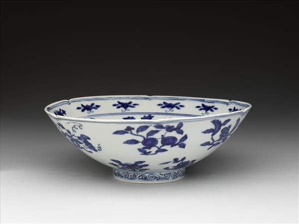 青花四季花果紋葵瓣口碗