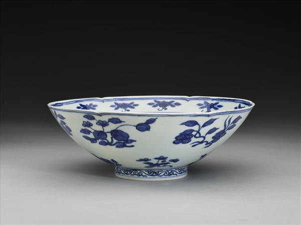 青花四季花果紋葵瓣口碗