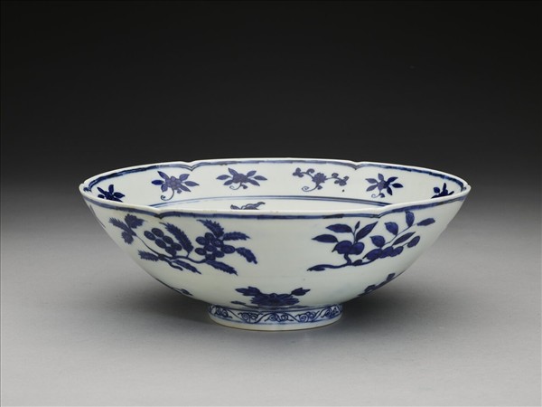 青花四季花果紋葵瓣口碗