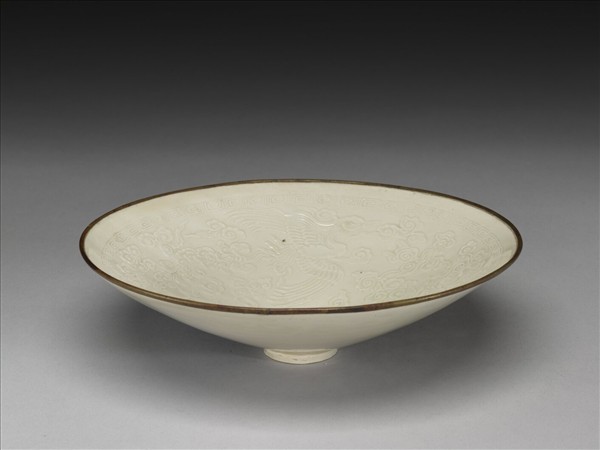 定窯 白瓷印花雲鳳紋笠式碗
