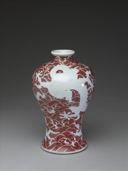 釉裡紅波濤龍紋梅瓶