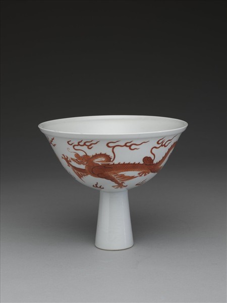 描紅雙龍戲珠紋高足碗