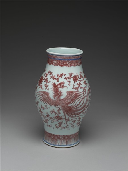 釉裡紅穿花鳳凰紋橄欖瓶