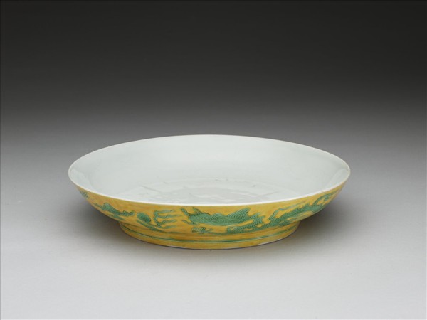 黃地綠彩龍紋白裡盤