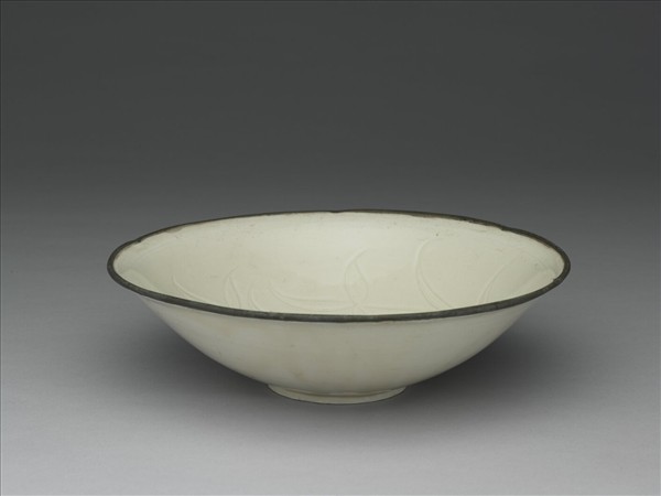 定窯 白瓷劃花雙鳧紋葵瓣口碗