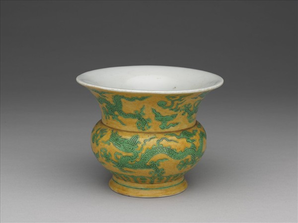 黃釉綠彩龍紋渣斗