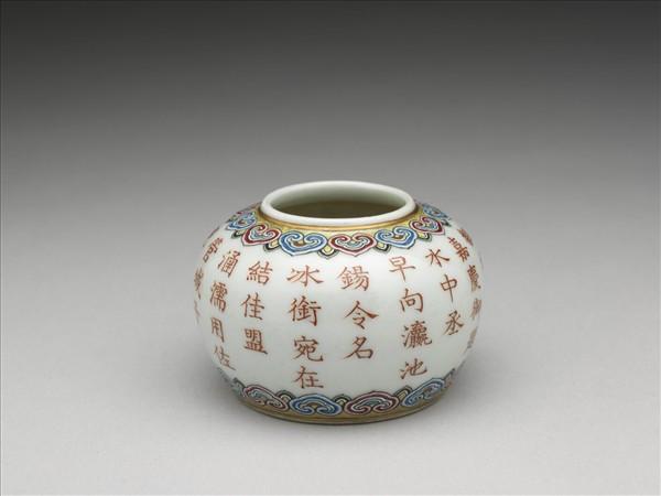 粉彩描紅詩意水盛