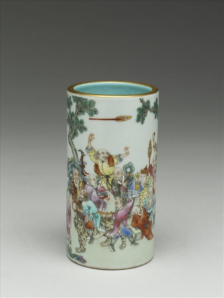 粉彩十八羅漢紋筆筒