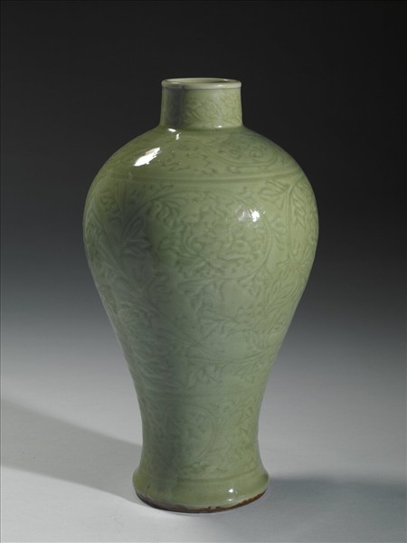 龍泉窯 青瓷劃花牡丹紋梅瓶