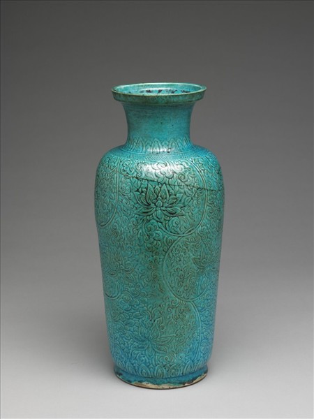 孔雀藍釉刻花纏枝番蓮紋瓶