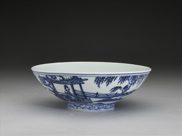 青花庭園仕女圖碗