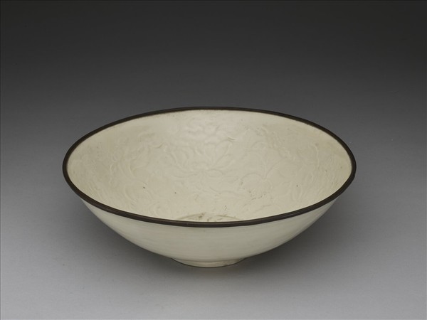 定窯 白瓷印花牡丹紋碗
