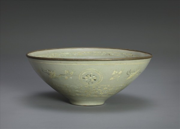 高麗青瓷象嵌雲鶴紋碗
