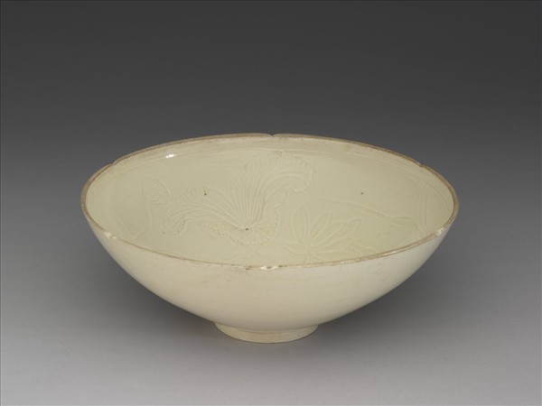 定窯 白瓷劃花蓮塘鴛鴦紋花口碗