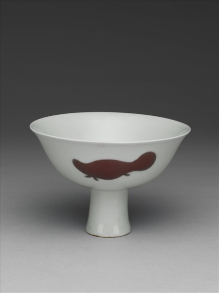 釉裡紅三魚紋高足碗