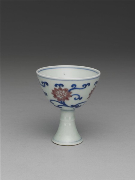 青花釉裡紅番蓮紋高足杯