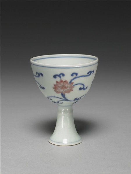青花釉裡紅番蓮紋高足杯
