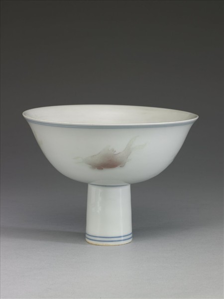 青花釉裡紅四魚紋高足碗