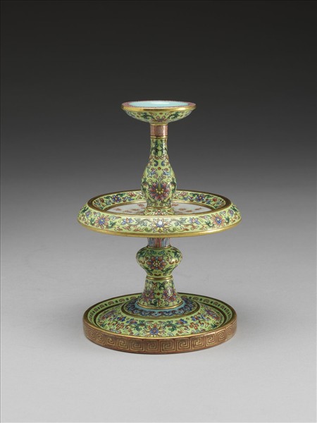 綠地粉彩番蓮紋燭台