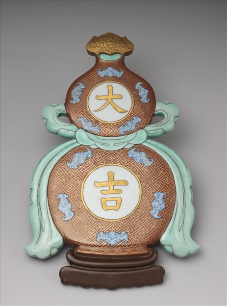 粉彩福壽大吉紋葫蘆式掛屏