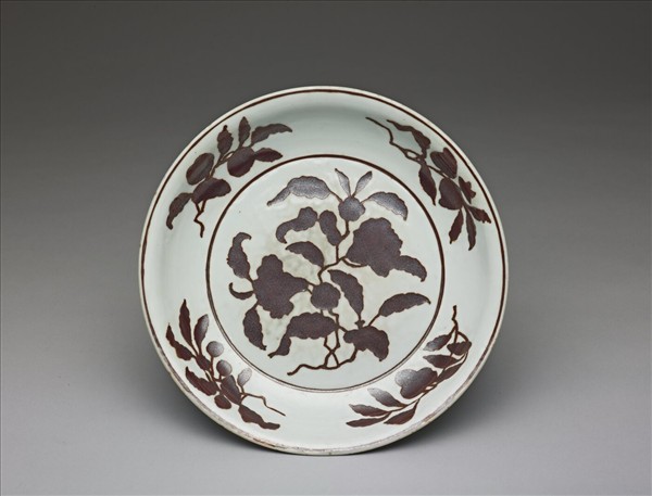 紫金釉折枝石榴花果紋盤