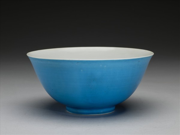 侈口窄唇,深壁,矮圈足。胎質甚薄,碗內純白釉,外面加施翠綠色,樸素無紋飾。