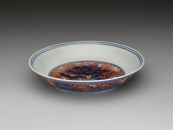 青花紅彩波濤龍紋盤
