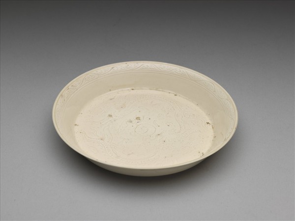 彭窯 白瓷劃花雙龍戲珠紋碟