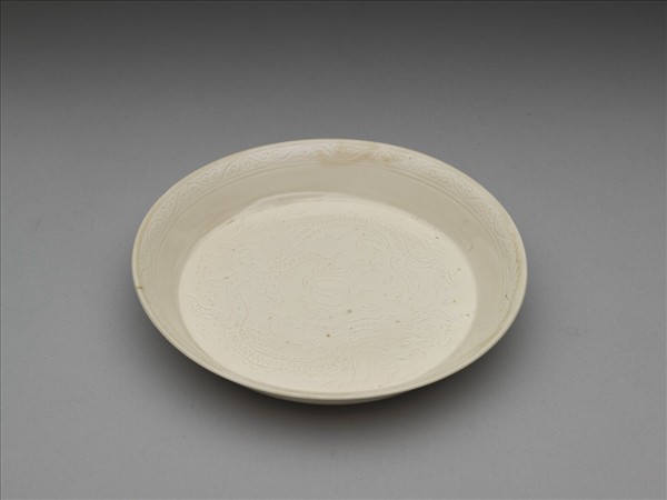 彭窯 白瓷劃花雙龍戲珠紋碟