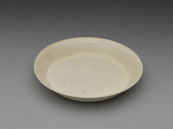 彭窯 白瓷劃花雙龍戲珠紋碟