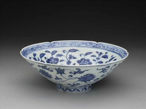 青花花卉紋葵口碗