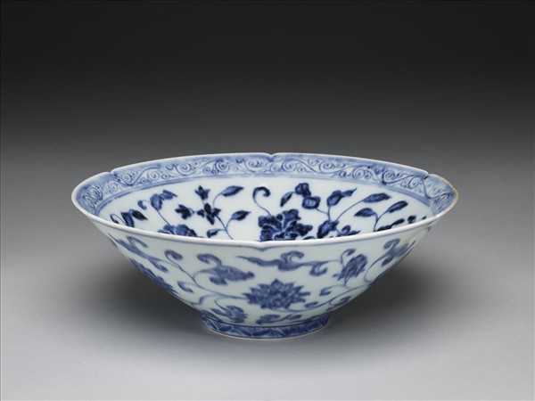 青花花卉紋葵口碗